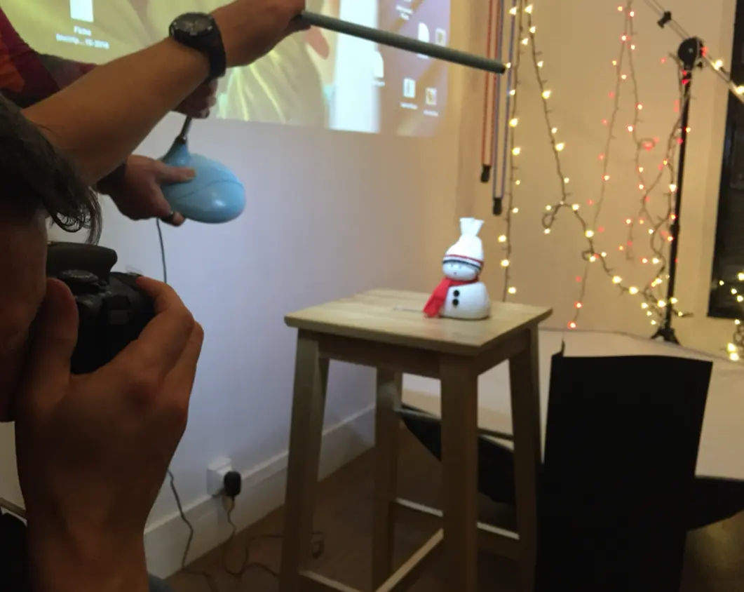 - Create a background with small lights (the fairy lights from your Christmas tree are perfect!)