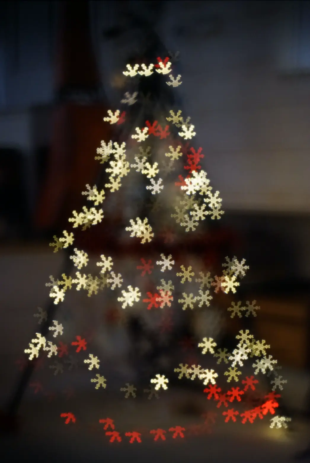 All the blurry bright points in the background take the shape of the cut-out pattern.
